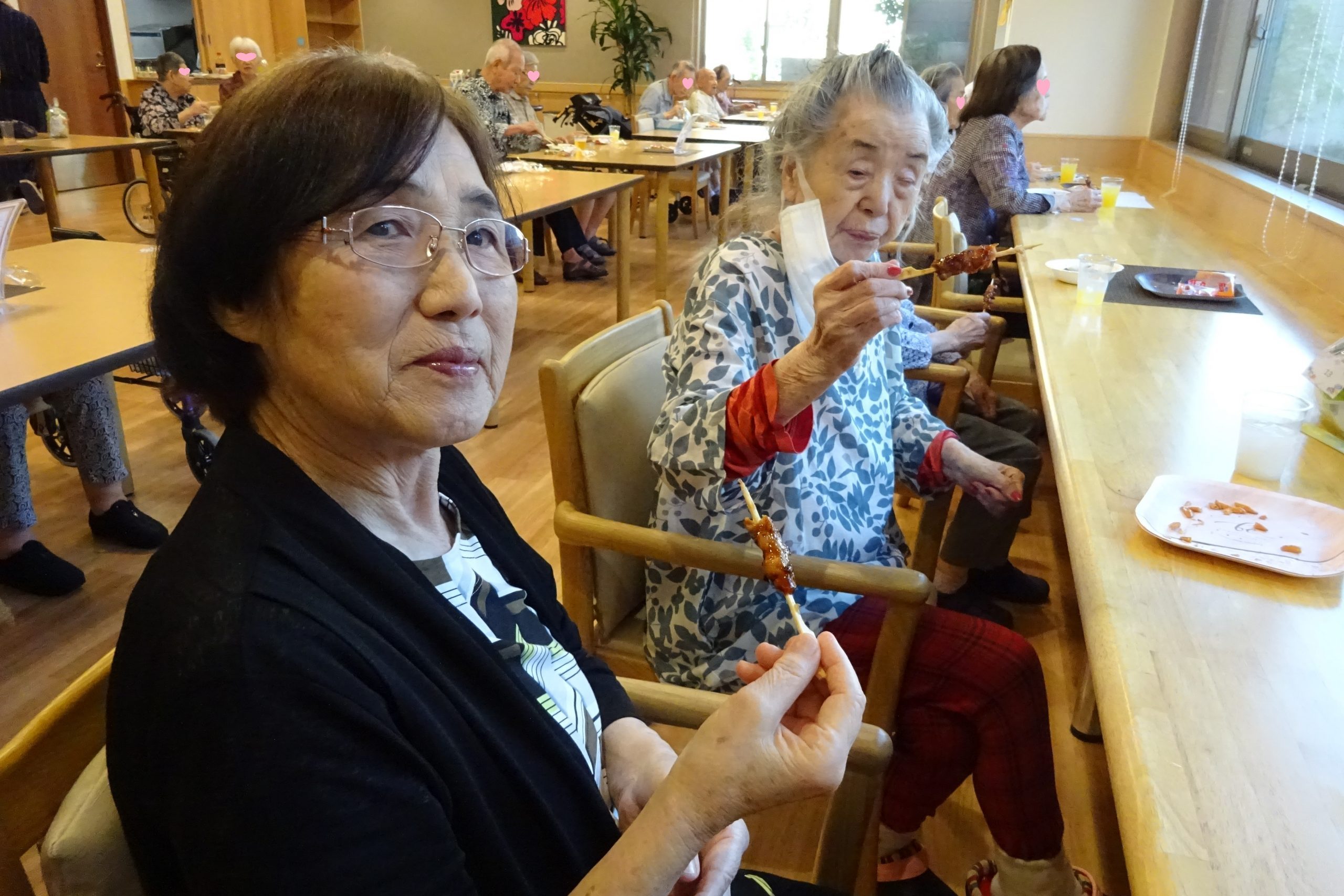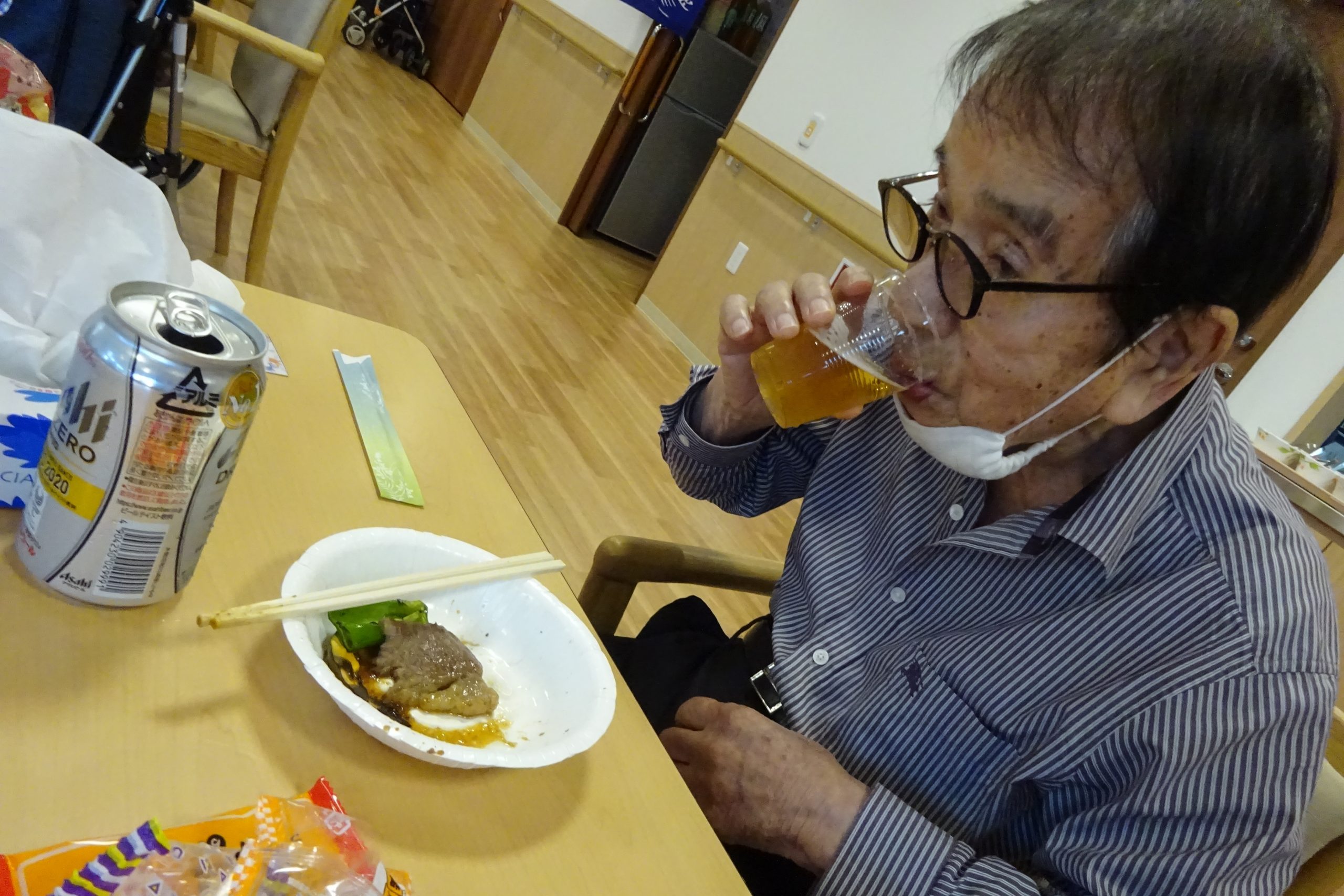 窓越しでのバーベキューを楽しまれ、焼きあがったお肉とお野菜に舌鼓を打たれ