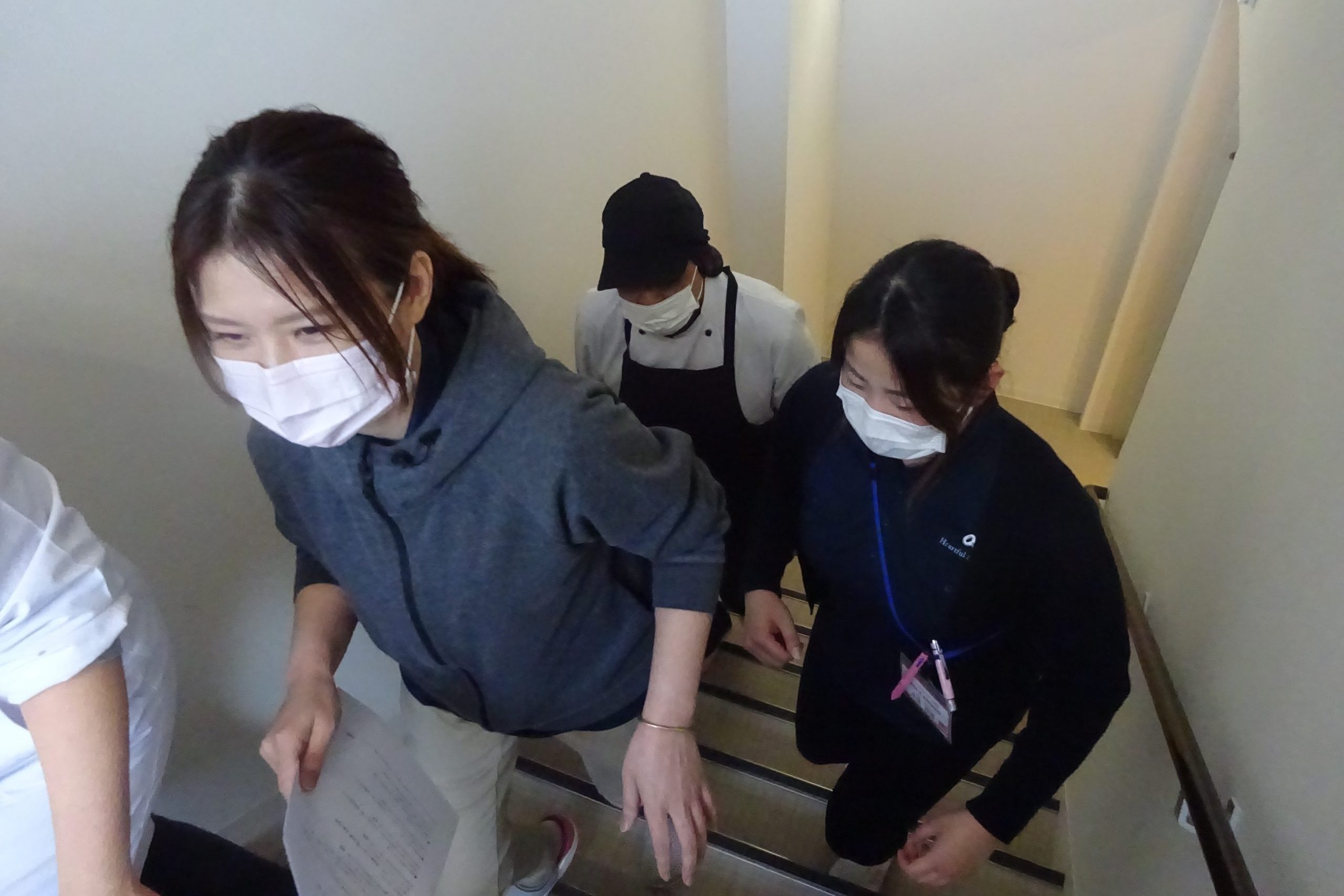 今回、初めて避難訓練に参加された新入社員もおり、一連の流れを行う事で不明な点が無いように何度も意見を出し合って相談している姿がとても良かったです。