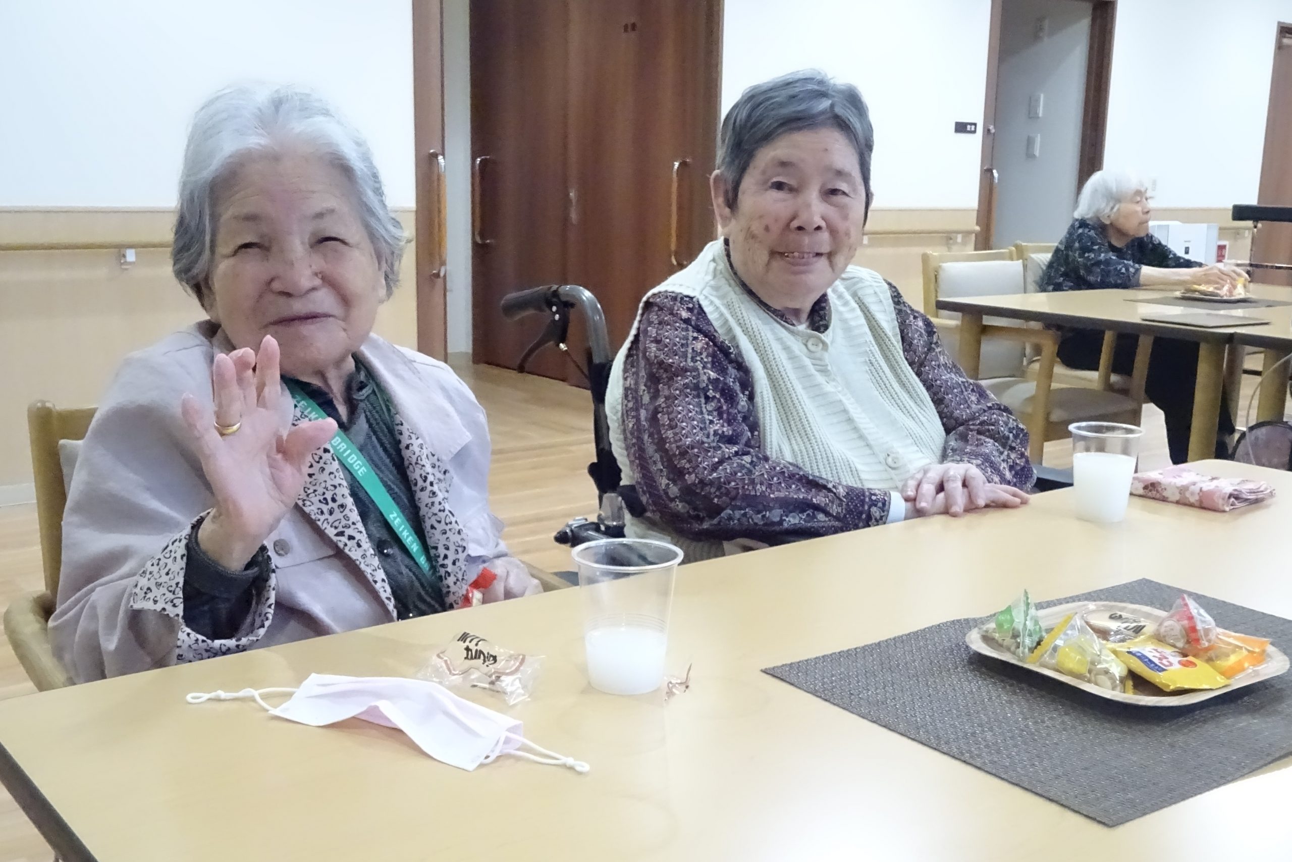 普段からとてもお話好きで、切り分けたケーキを仲良しのご入居者と召し上がり、会話も一層弾み楽しいお時間を過ごされました。
