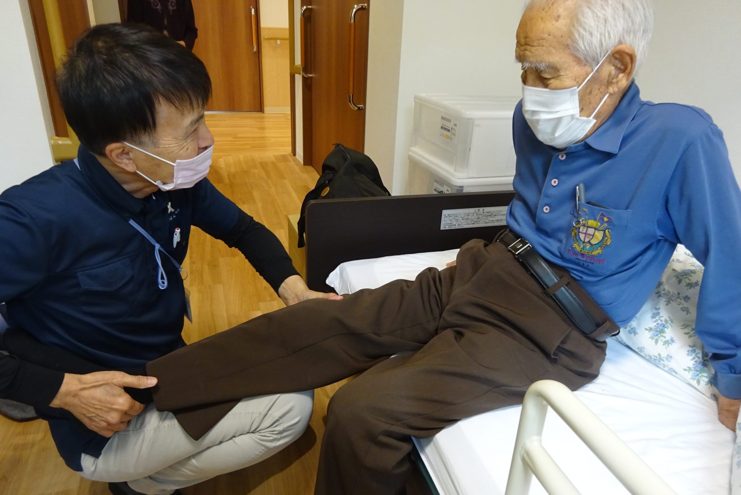 足の動きを見ながら会話をされている様子を見ながら、ご入居者の心に寄り添うさるわたりさんと、それに応えようとされるHさまの信頼関係が垣間見えたひと時でした。