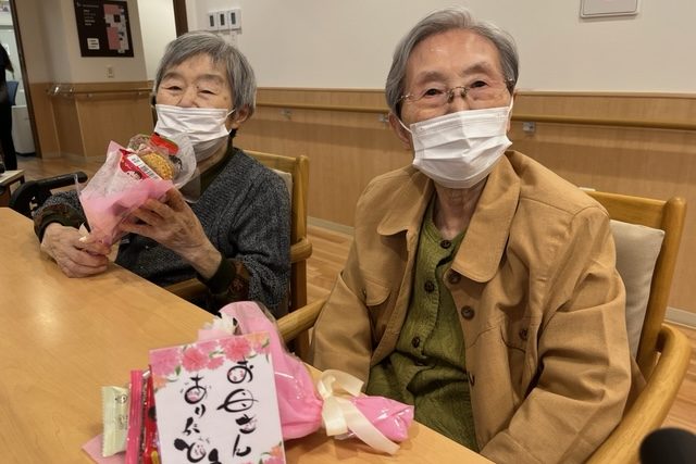 あるご入居者はご家族からお花のブーケをもらい、とても喜ばれていました。