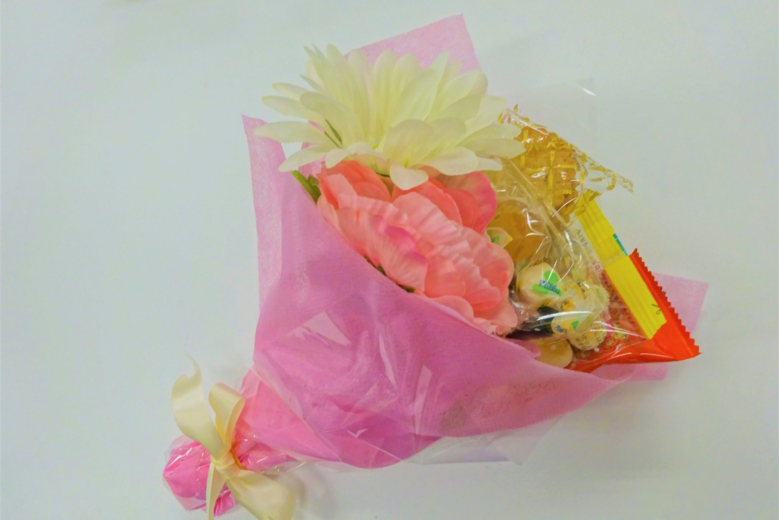 アルファリビング鹿児島上荒田では、お花とお菓子を組み合わせた「お菓子のブーケ」をプレゼントしました。