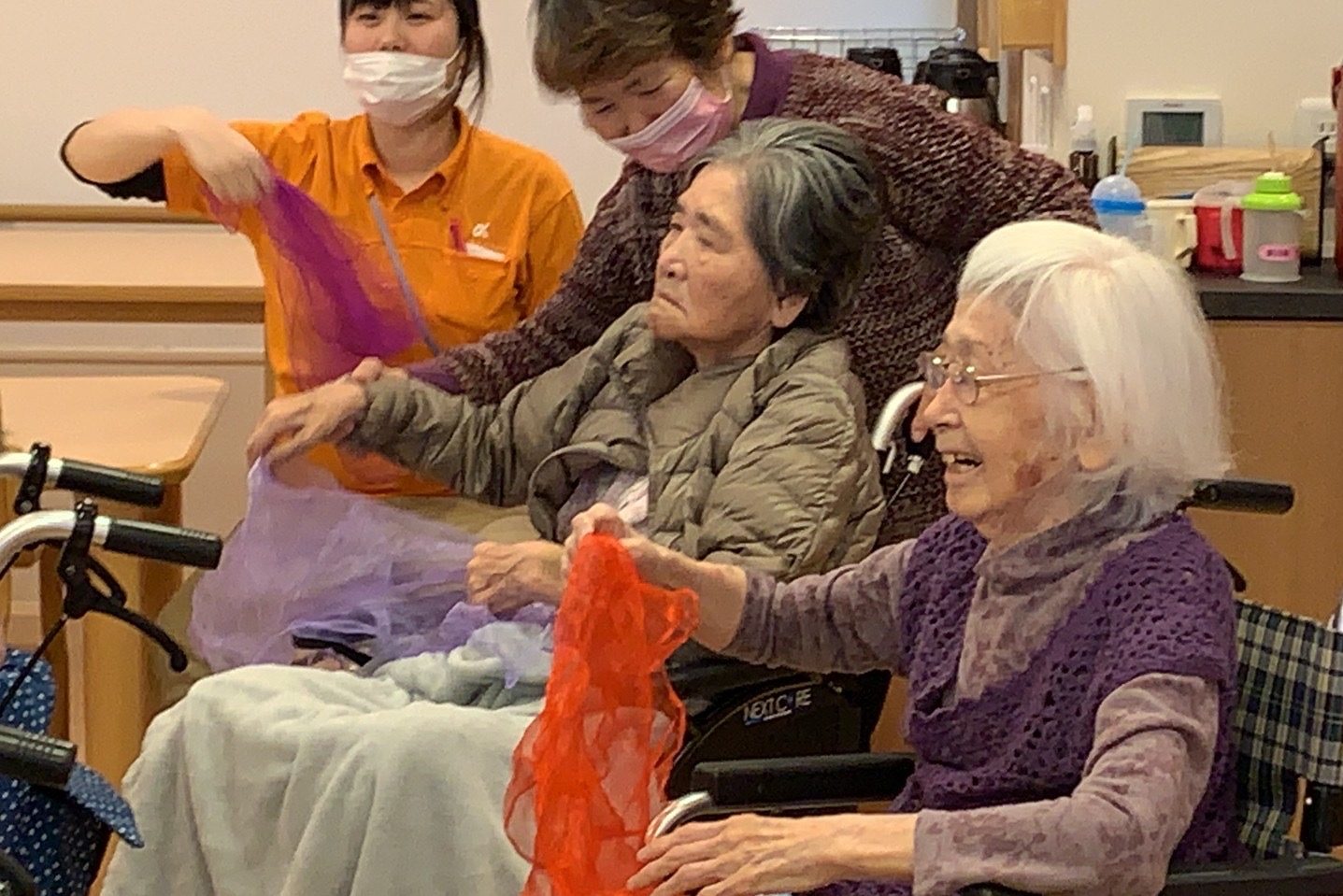体も温まり、懐かしい曲が流れると、皆さんさっきまでの恥ずかしがり屋な様子は全く感じない、活き活きとした動きで、手足を動かしたり、歌をうたったり。