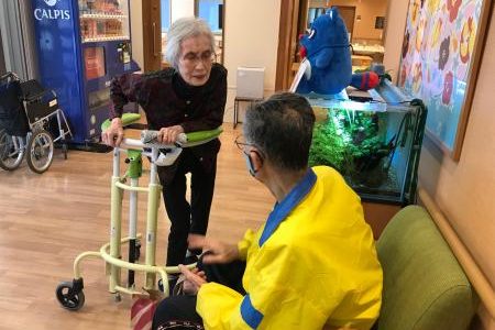 先日は娘さま、息子さまが洗濯物の交換を兼ねて面会に来てくださいました。