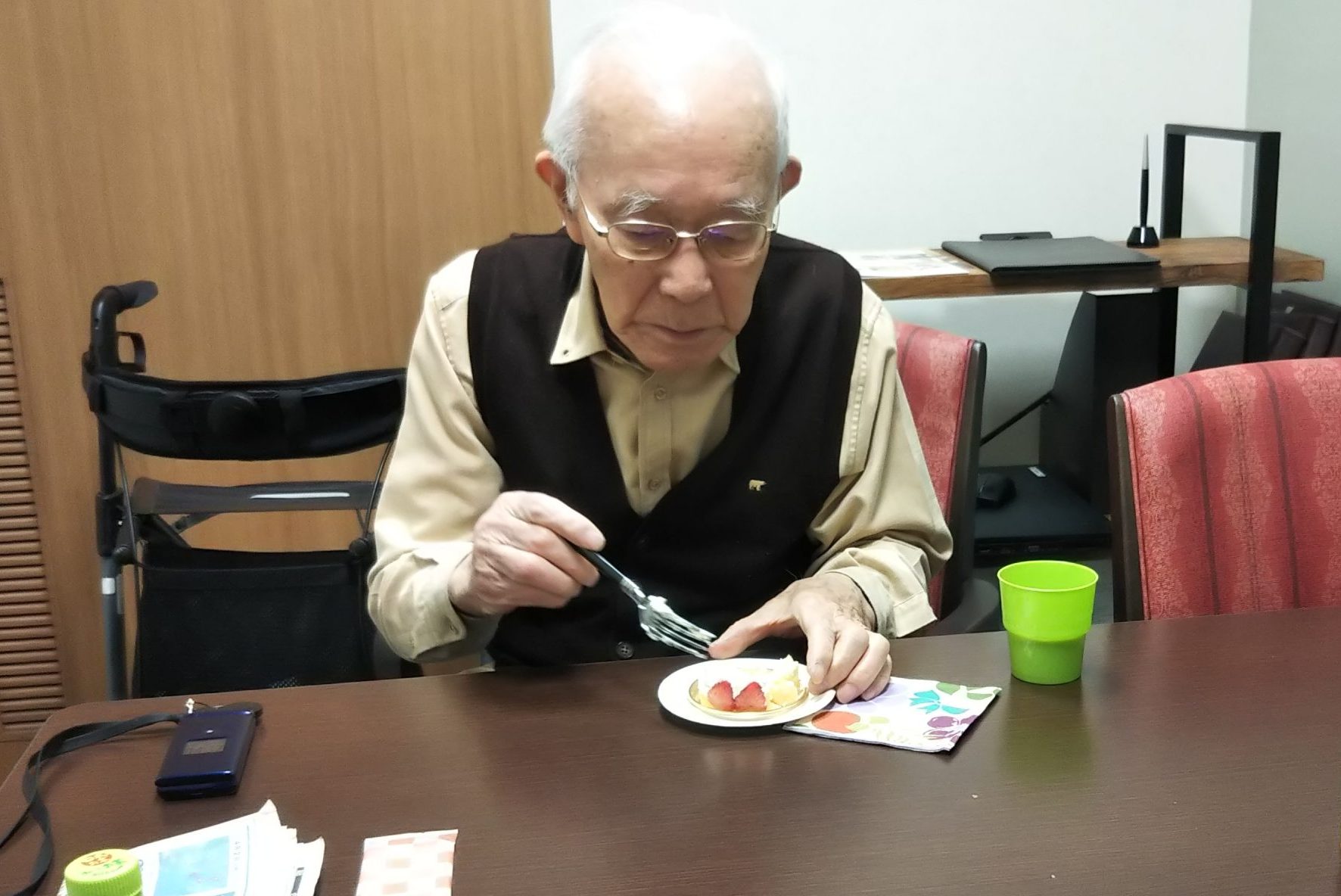 息子様ご家族がお誕生日ケーキを持参され、短時間ではありましたがお祝いをしました。