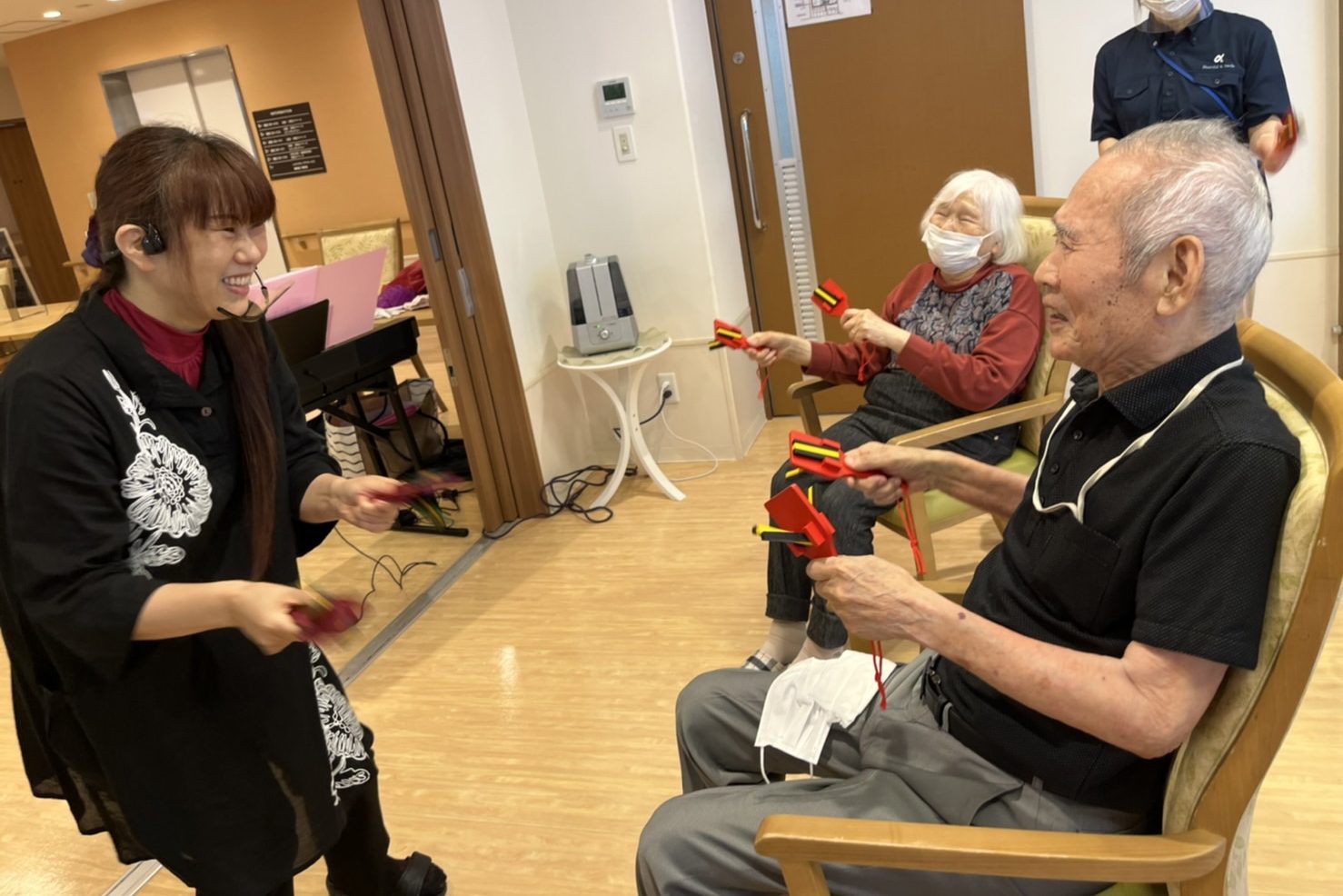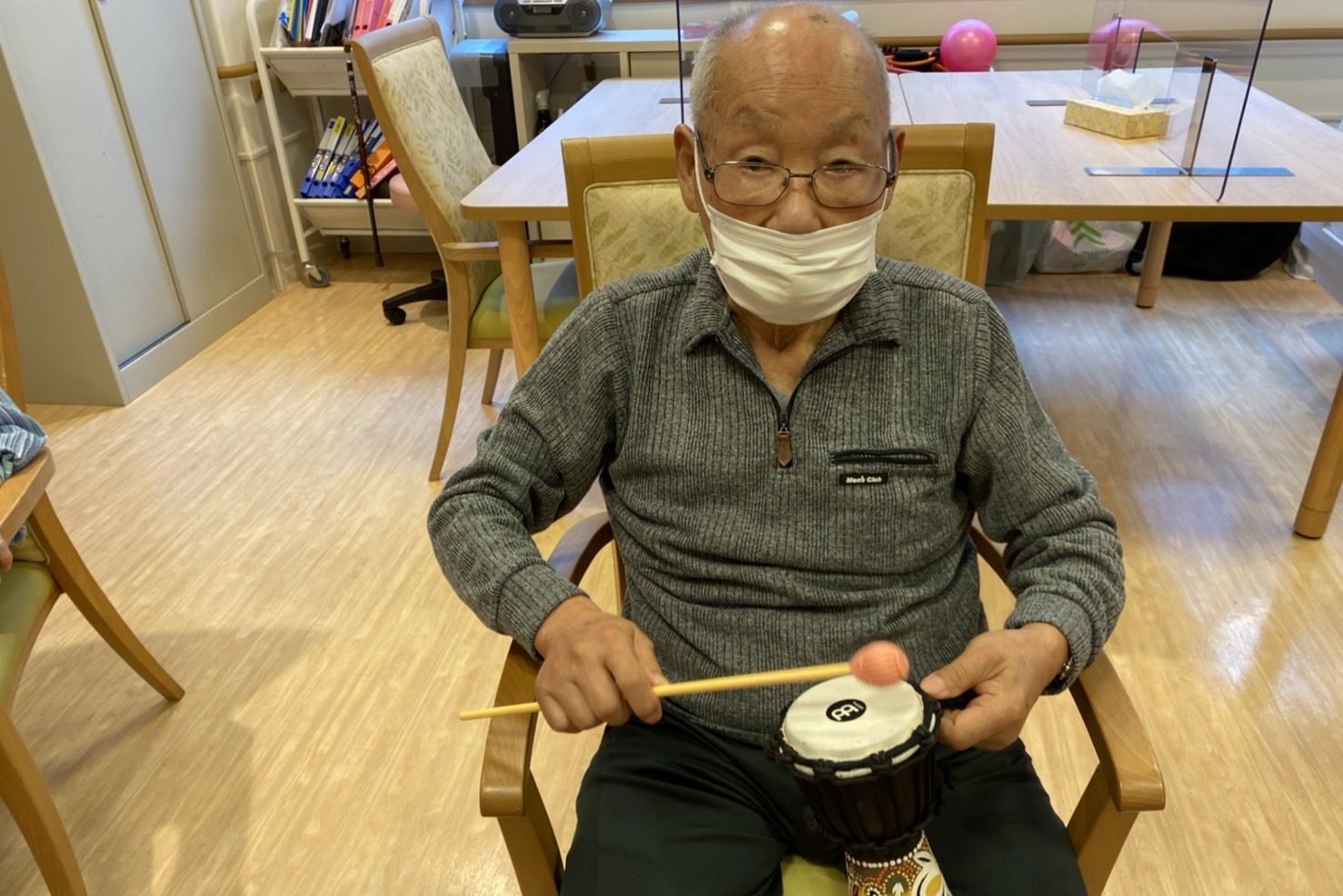 アルファデイサービスセンター上之園の音楽療法で、いつも楽しい時間を提供してくださるF先生。