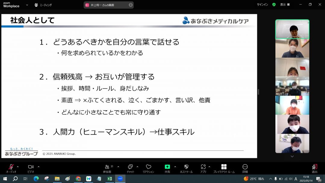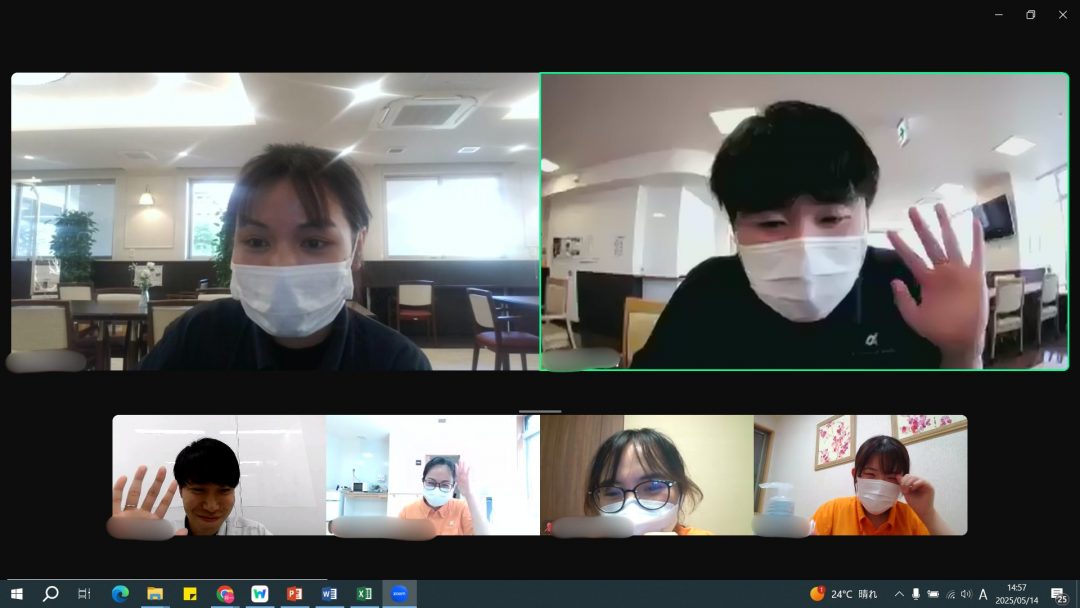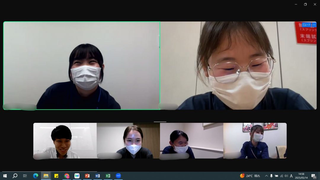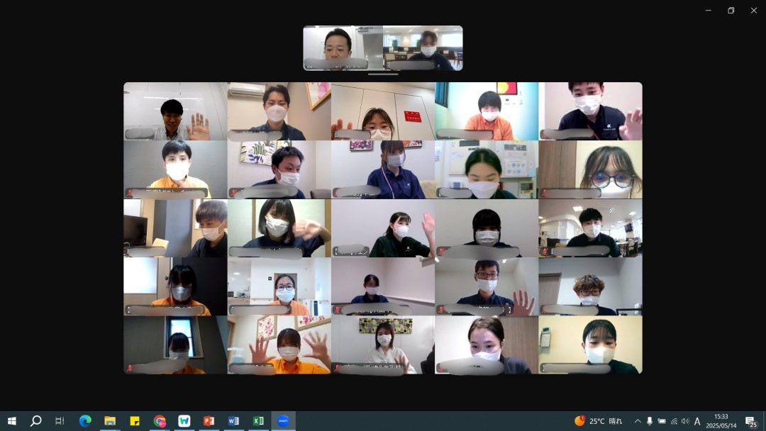 約1か月半ぶりの再会でZoomでということもあってか、最初はみなさん表情が硬く緊張していましたが、時間が経つにつれ、4月の研修時のような笑顔が見ることができました。