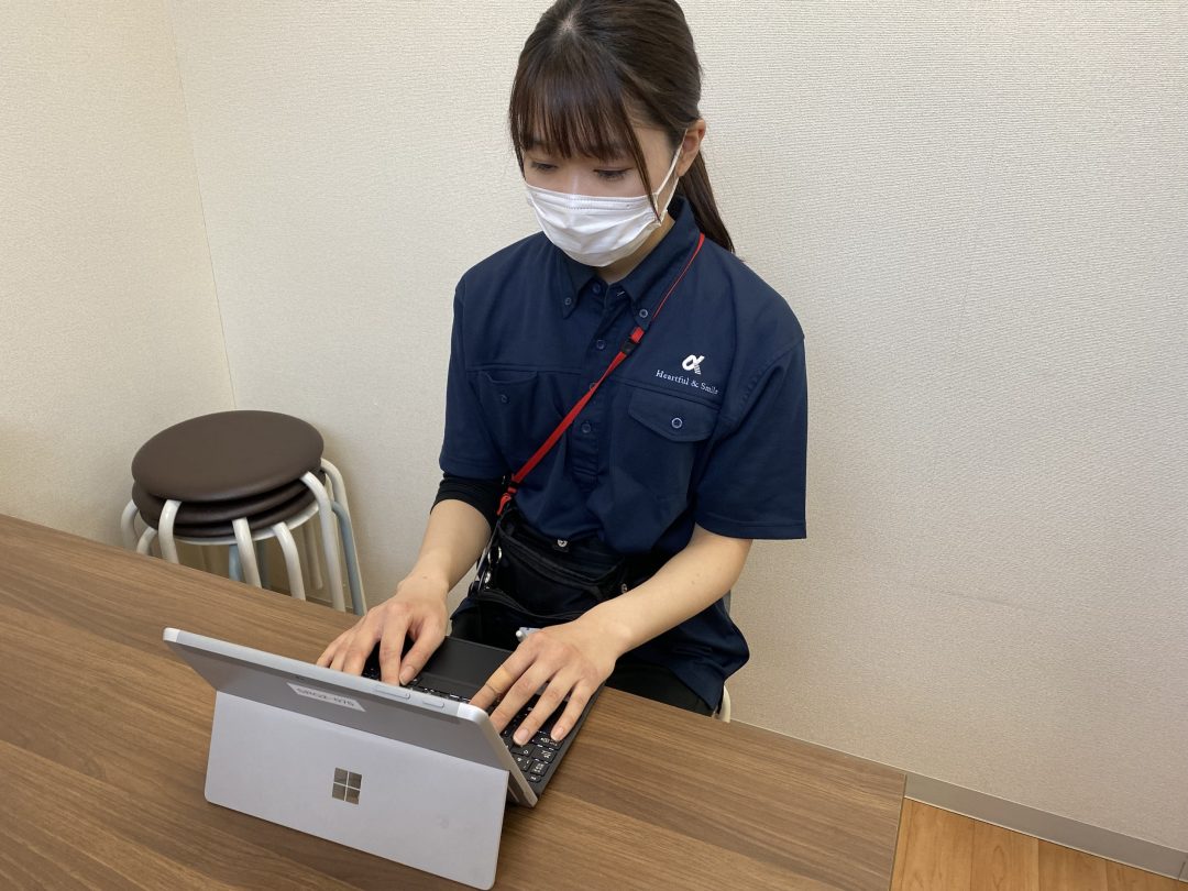 入社した当初は、覚えないといけないことがたくさんあって、頭がパンパンになるのですが、3か月間ずっと先輩スタッフに同行してもらえるので、その間に何とか慣れることができ、4か月目からは自信をもって仕事できました。