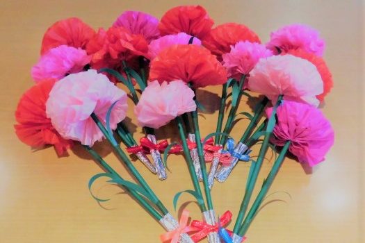 スタッフとご利用者で手作りのカーネーションを一緒に作りました。