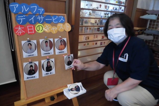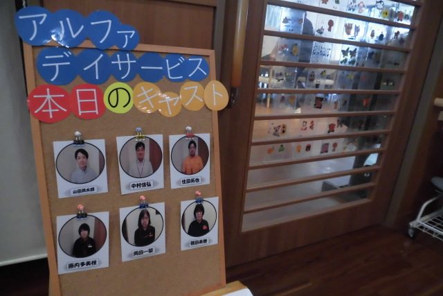 そして、スタッフの顔と名前が確認できるよう、「ウェルカムボード」を作りデイサービスの入り口に設置しました。