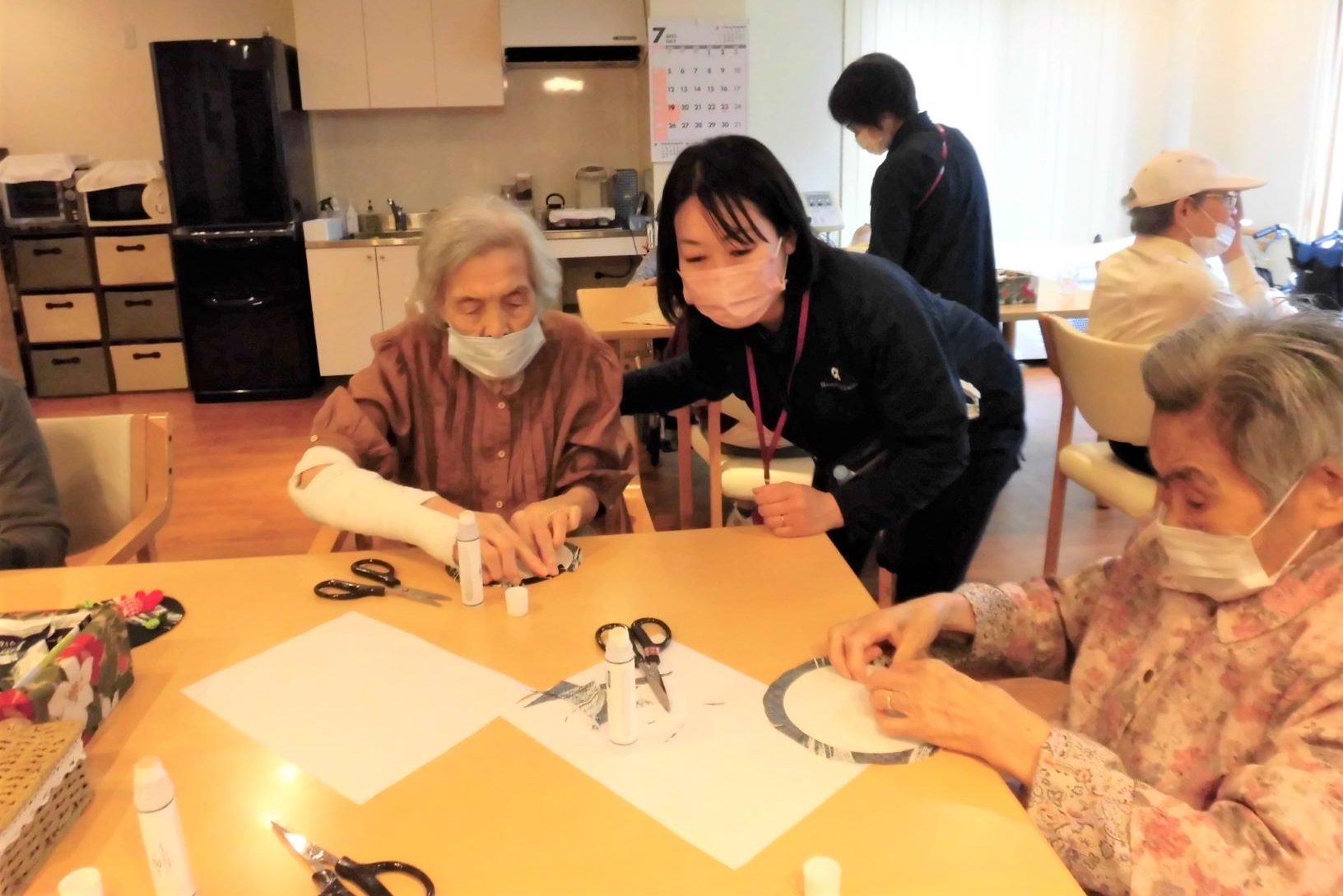 ついこの前、年が明けてご利用者とお正月飾りを飾ったと思えば、春になり桜の貼り絵を楽しみ、雷雨と共に梅雨が明け、気が付けばもう夏祭りの時期です。