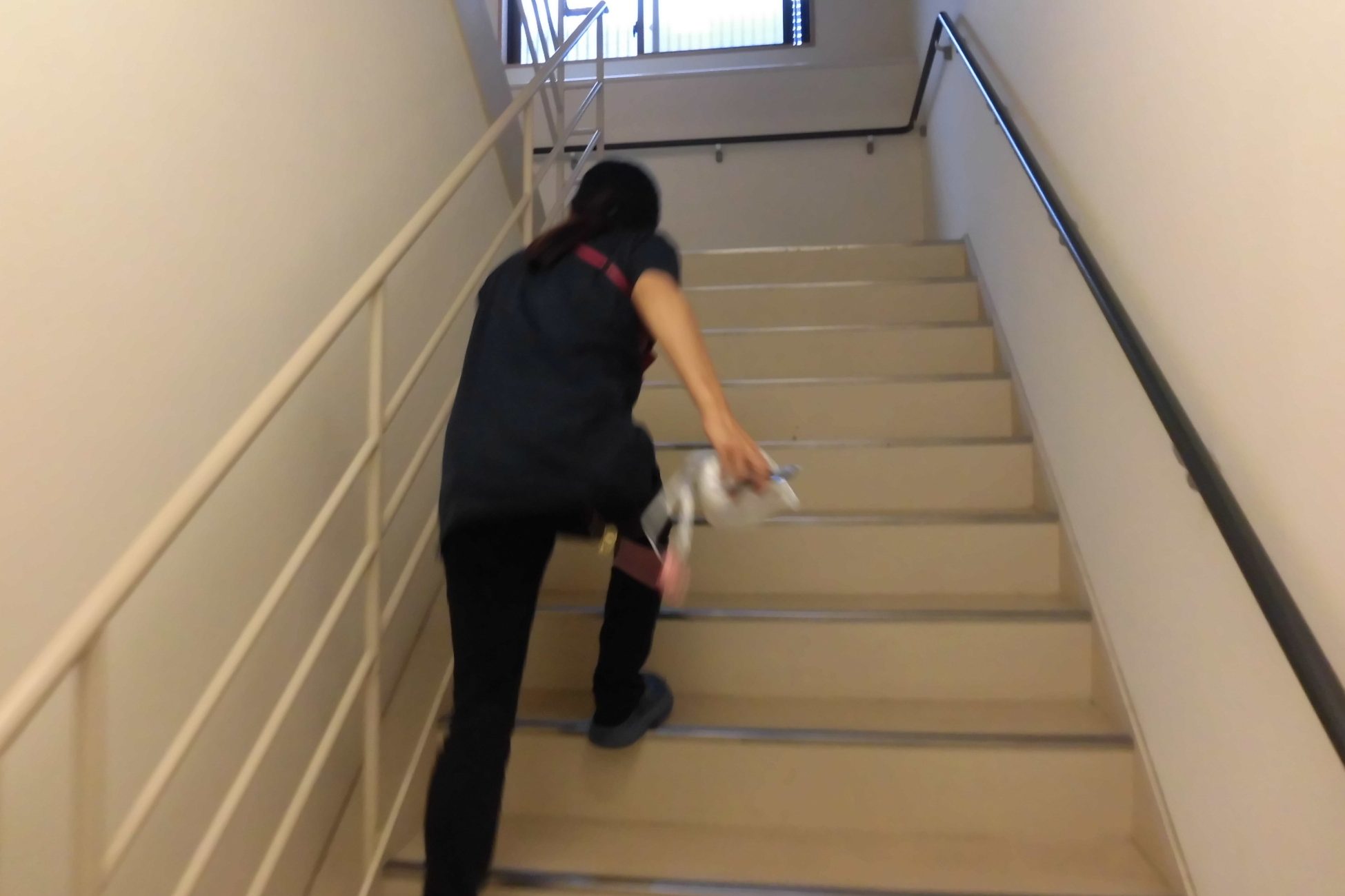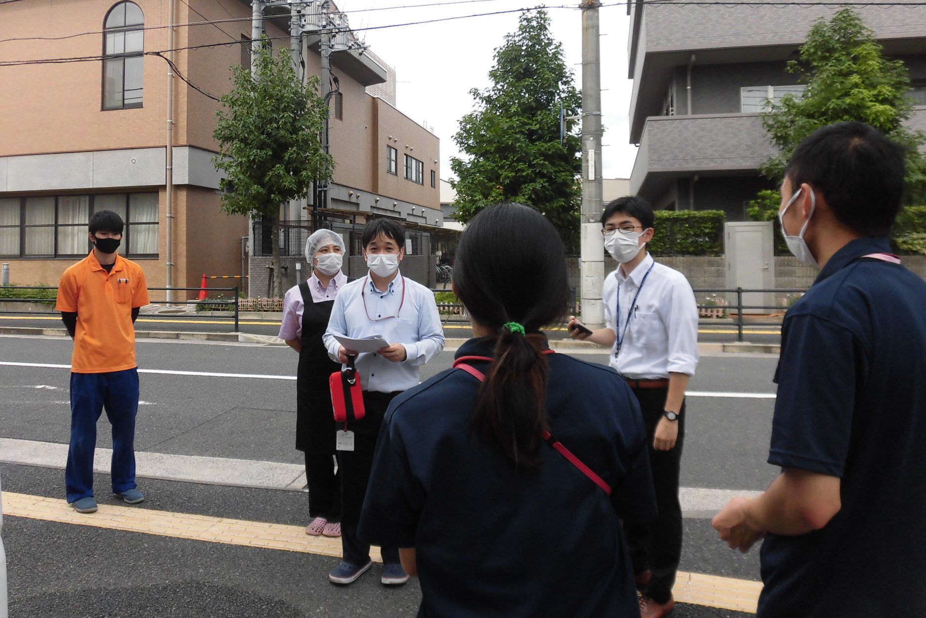 有事の際に皆さまを安全に誘導し避難していただくためにどうしたらよいか、どうすれば自分自身の身の安全も確保できるかを考え、訓練開始です。