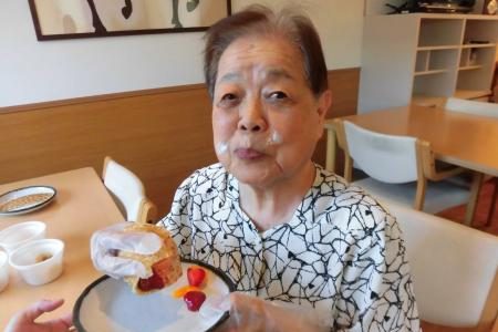 クレープを作って食べたイベントの写真を指さして、話されていました。