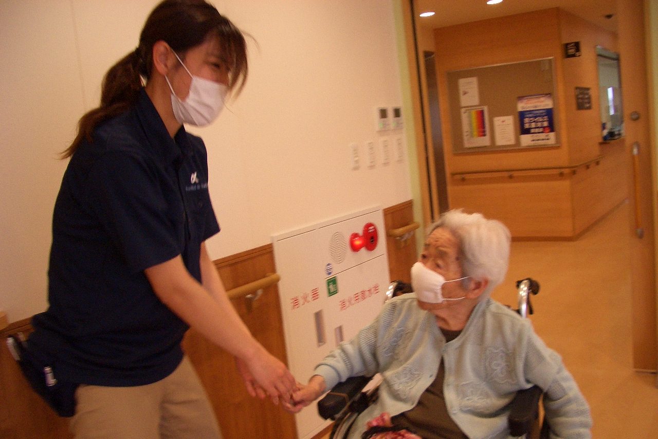 復帰した姿をみて、涙を浮かべて車椅子で必死に駆け寄ってくるご入居者。
