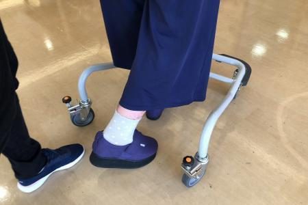 現在は、その靴を履いて、活き活きと歩行器での歩行訓練に励まれています。