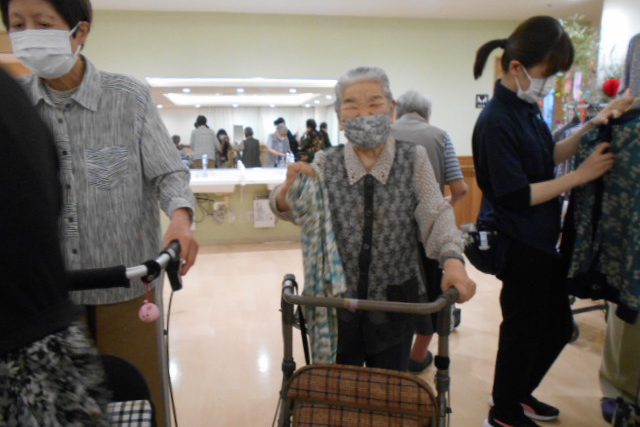 2,3週間前からスタッフの「お洋服屋さんが来ますよ♥」という案内に、皆さんワクワクされ当日のアナウンスで最高潮に気持ちが盛り上がりました。
