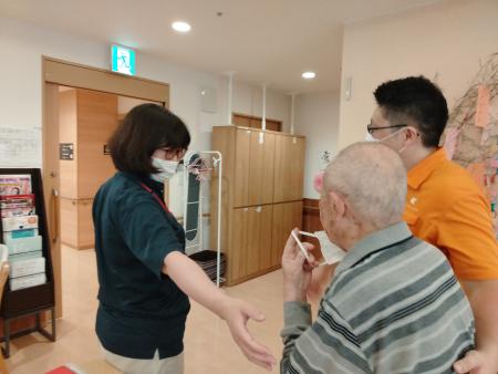 入社して、「おはようございます。」「いってらっしゃいませ。」とご入居者に温かい言葉がけをされている姿だけでなく、事務所に訪ねて来られるご入居者に「どうされましたか?」と、必ずご自身の仕事を止め寄り添う姿。